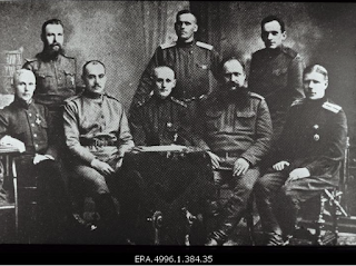1917 Petrograd, Eesti sõjaväelaste komitee Petrogradis (foto Johannes Äro 1904-2000). Istuvad vasakult: lipnik V Tõruke, reamees M lüdig, leitnant Th Käärik, reamees M Lüll, lipnik Nikolai Wildenau; seisavad vasakult: reamees K Kider, sv-am? P Schneider, reamees H Martna.